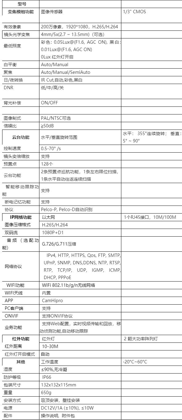 采用高性能圖像傳感器,H.265/H.264壓縮格式,200萬像素,分辨率1920x1080.