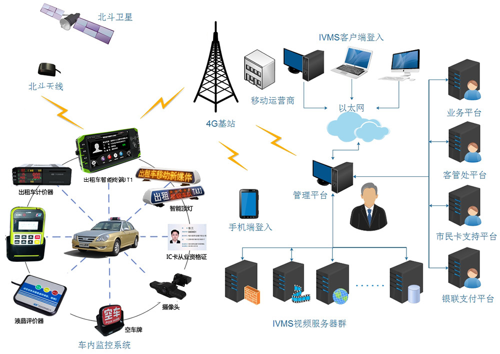 隨著城市經濟的發展,社會的進步,人民生活水平的提高,出租車已成為城市交通的重要組成部分。近年各大城市出租車數量增長迅速,在一定程度上造成了城市交通擁堵,使得人們每天將大量寶貴的時間消耗在路上、車中,導致乘客對出租車的服務要求越來越高,抱怨越來越強。但是出租公司對下轄的車輛管理比較單一、運營數據采集困難;同時司機私載乘客、空車率高、實時性差、調度分散等一系列問題嚴重影響著出租車公司的利潤;再加上近年來出租車搶劫等安全案件顯著增加,也給駕駛員人身安全和財產造成嚴重威脅。